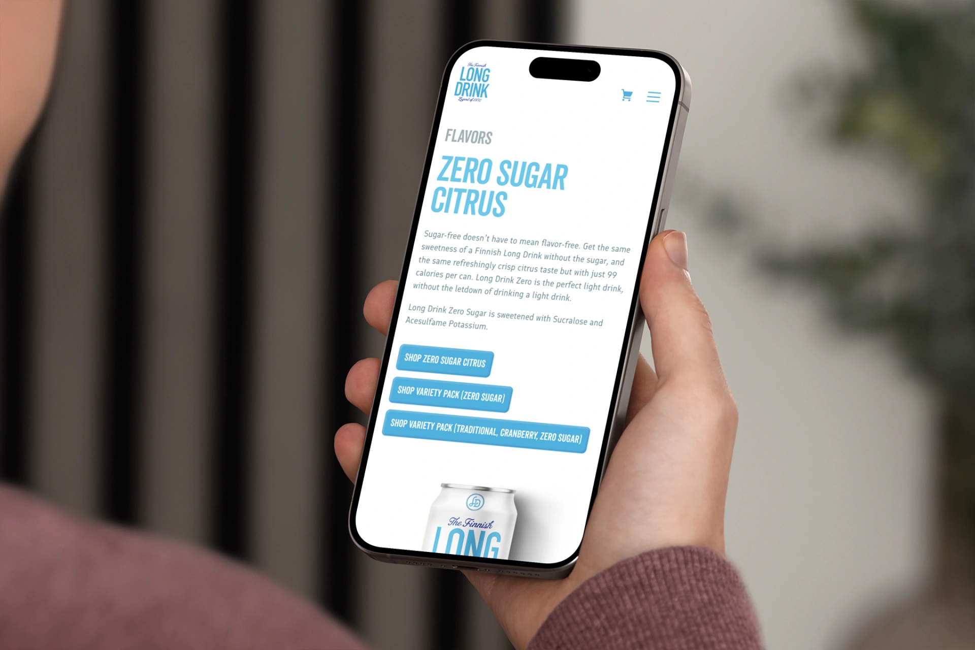 We partnered with The Long Drink to rebuild their website from the ground up, modernizing both design and functionality to better serve customers and retail partners. The new experience includes a custom-built store locator that dynamically populates nearby retailers and available flavors in real time. We also integrated a Shopify + Shopyflow system, enabling direct product sales through the site. The result is a seamless digital platform that connects customers to Long Drink products wherever they are.